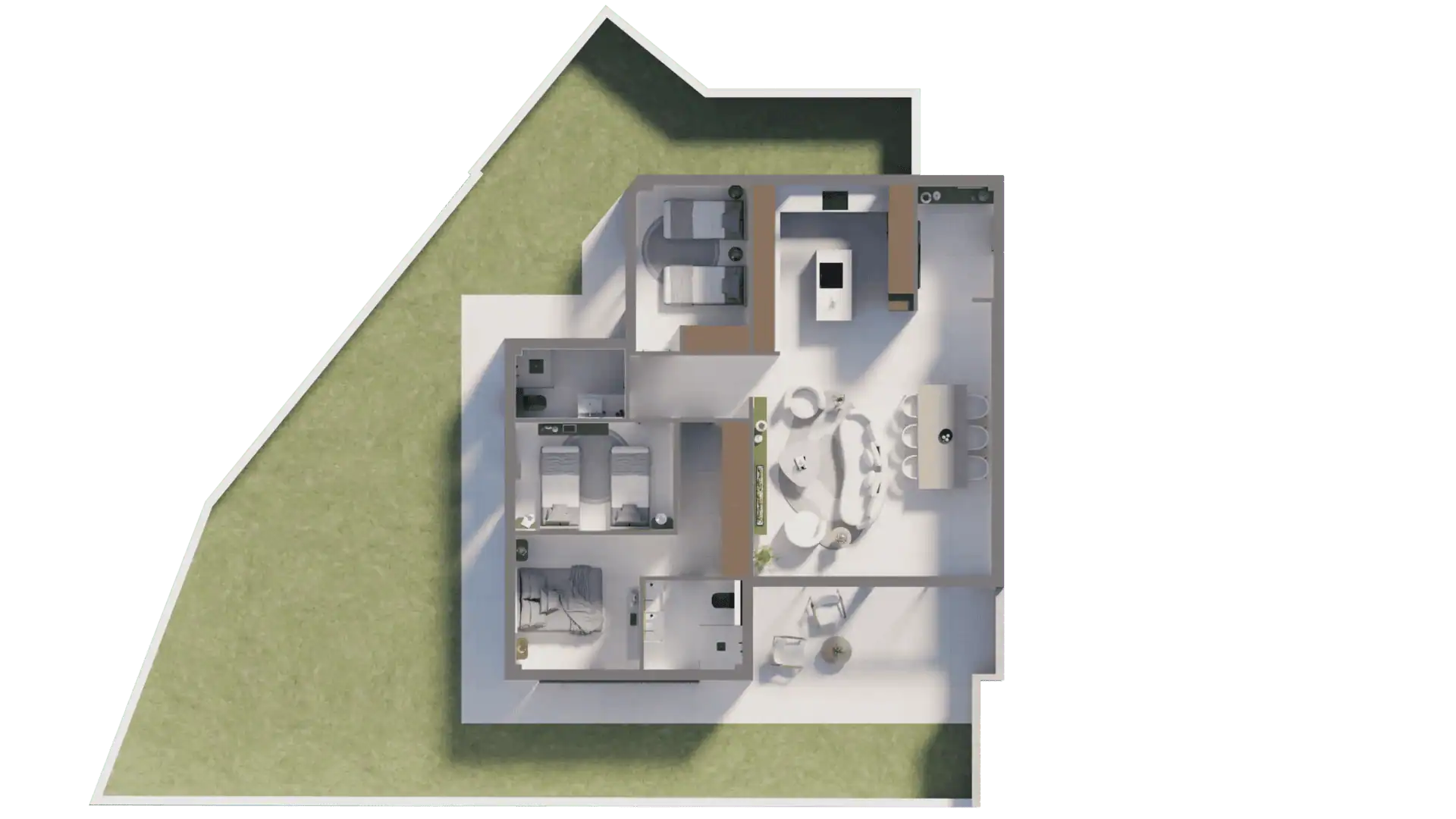 3 ground-floor apartments with private gardens and terraces, ranging from 110 to 123 m² of living space, complemented by generous outdoor areas exceeding 100 m².