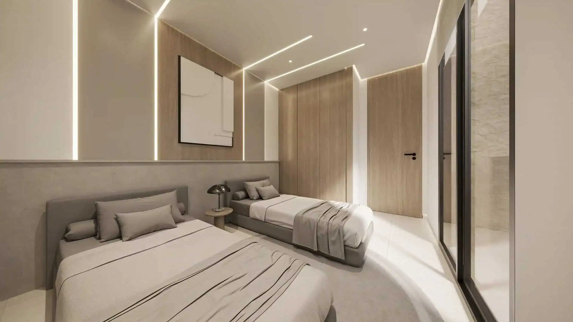 Each residence blends contemporary luxury, modern functionality, and timeless Mediterranean charm. Clean lines, open layouts, and strategic orientation ensure natural light all day long. Large-format flooring enhances the sense of space, while a refined, minimalist palette is paired with furnishings that combine freshness, simplicity, and warmth, creating a harmonious and inviting atmosphere.
