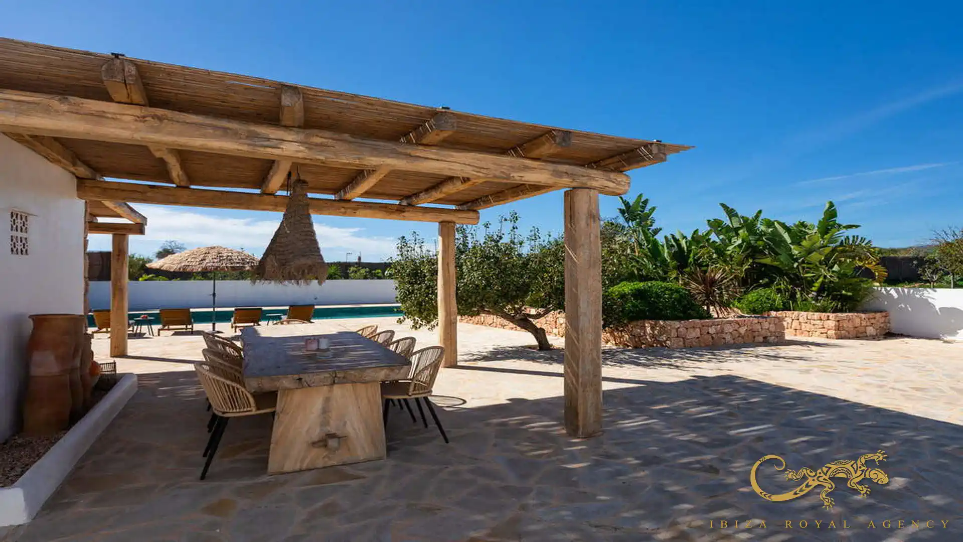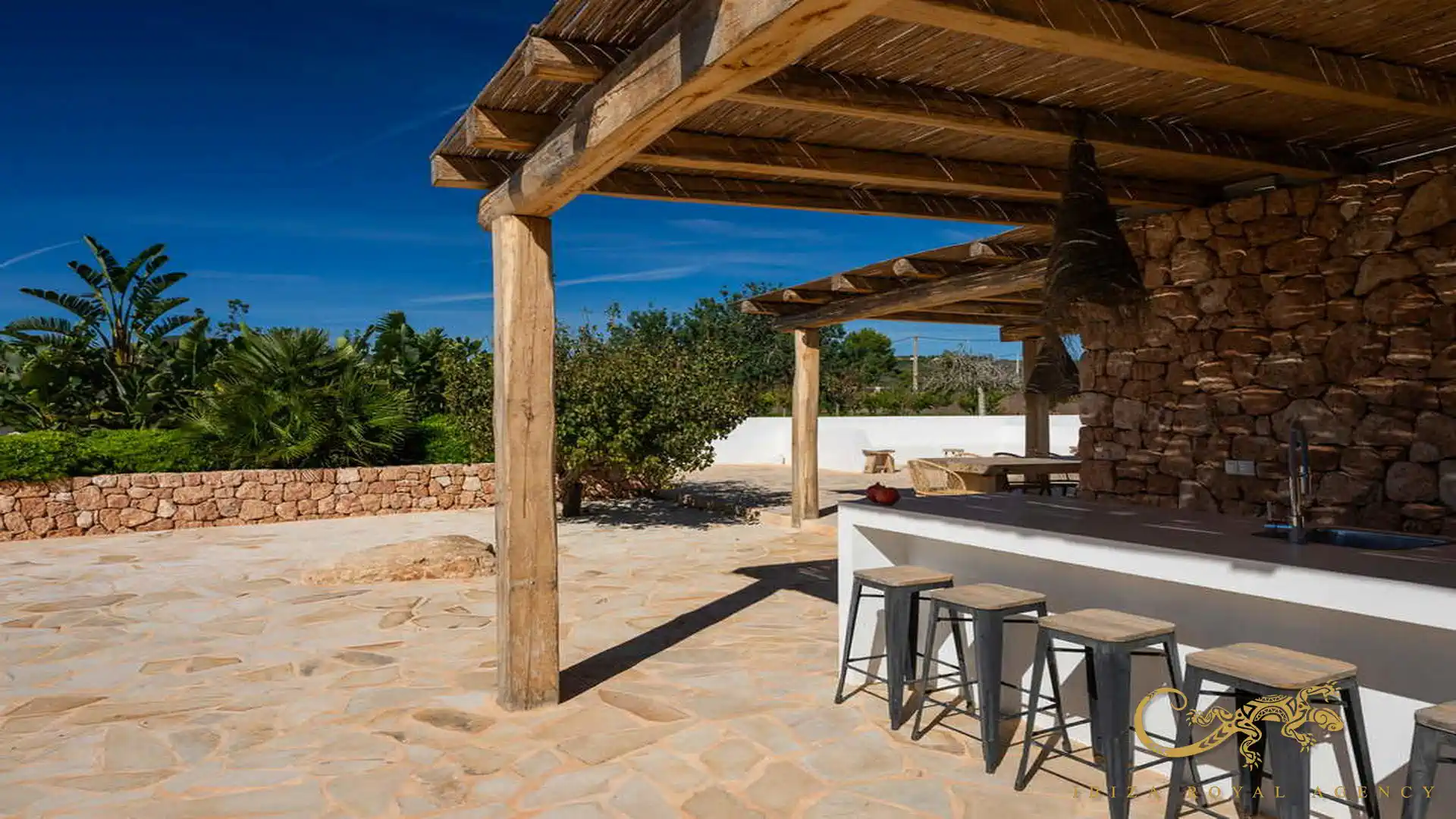 Luxury bohemian chic villa with guest cottage, large grounds and pool for sale in Sant Jordi. Elegant island living near Ibiza Town.