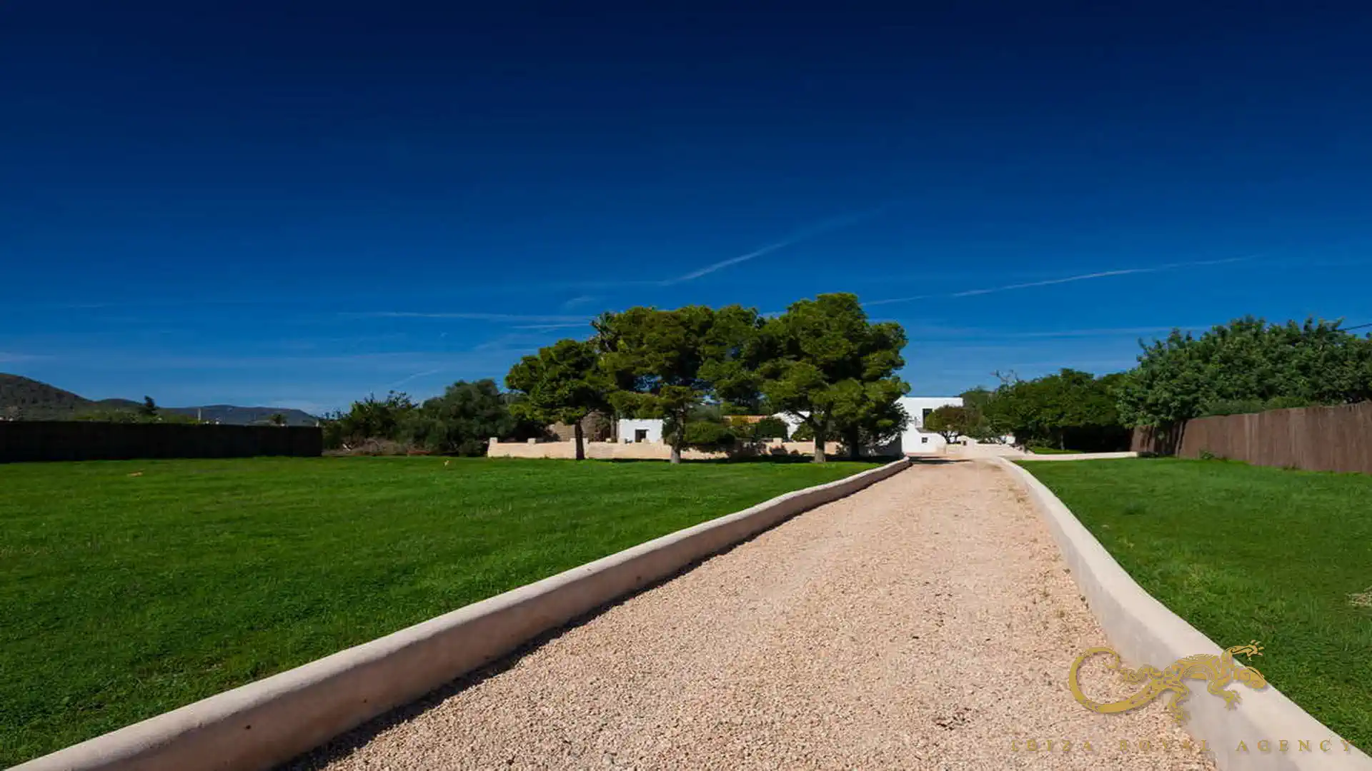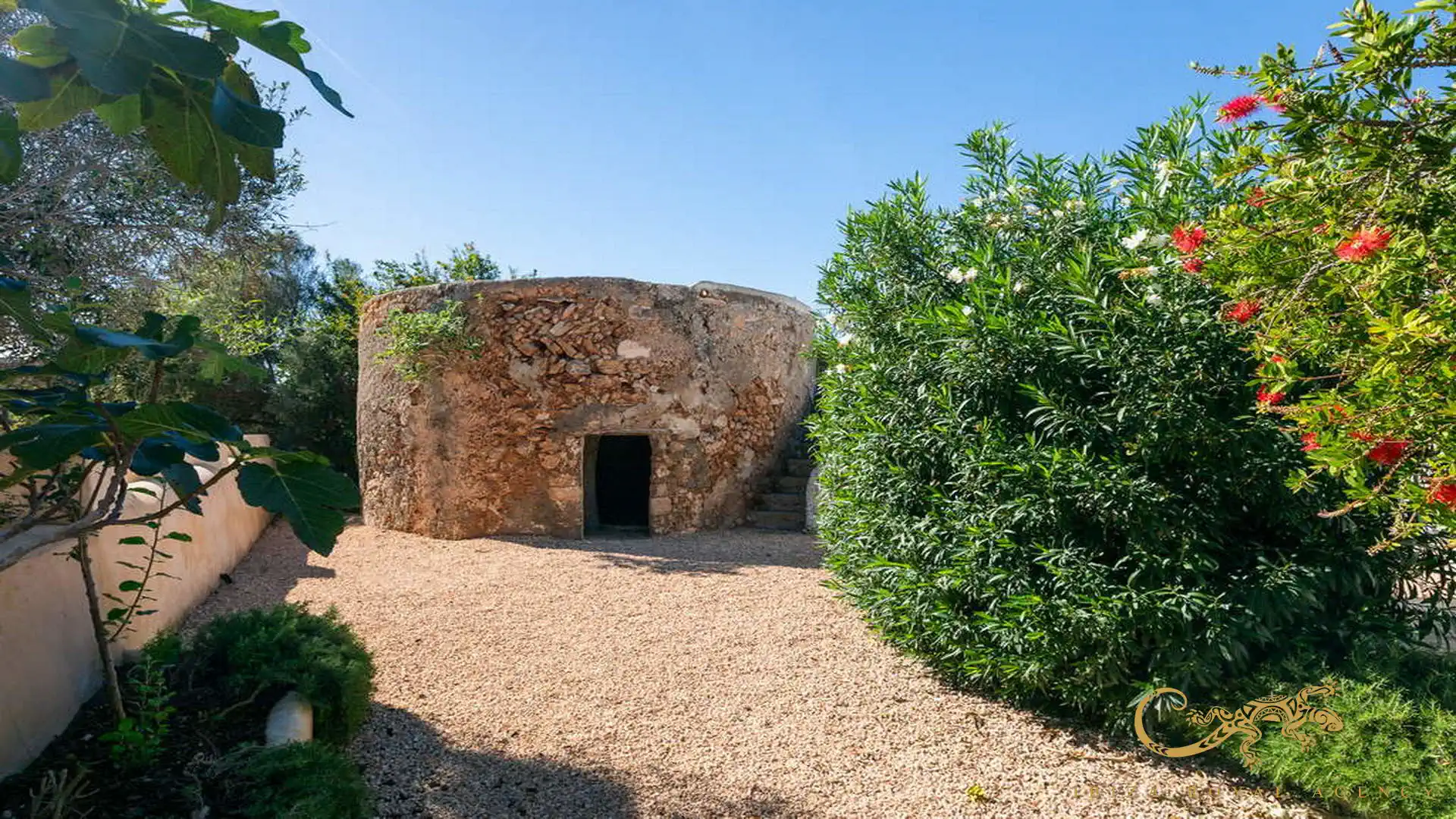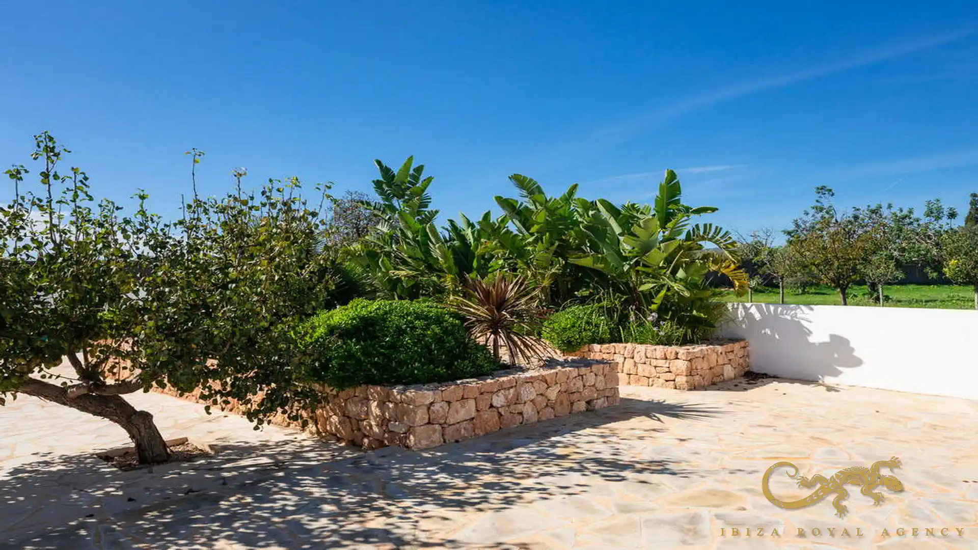 A distinctive feature of the estate is the original Ibicenco stone tower, a historic element that adds character and authenticity to the grounds. Discreet garden lighting enhances the property’s beauty at night, illuminating pathways and highlighting architectural details to create a magical evening atmosphere.